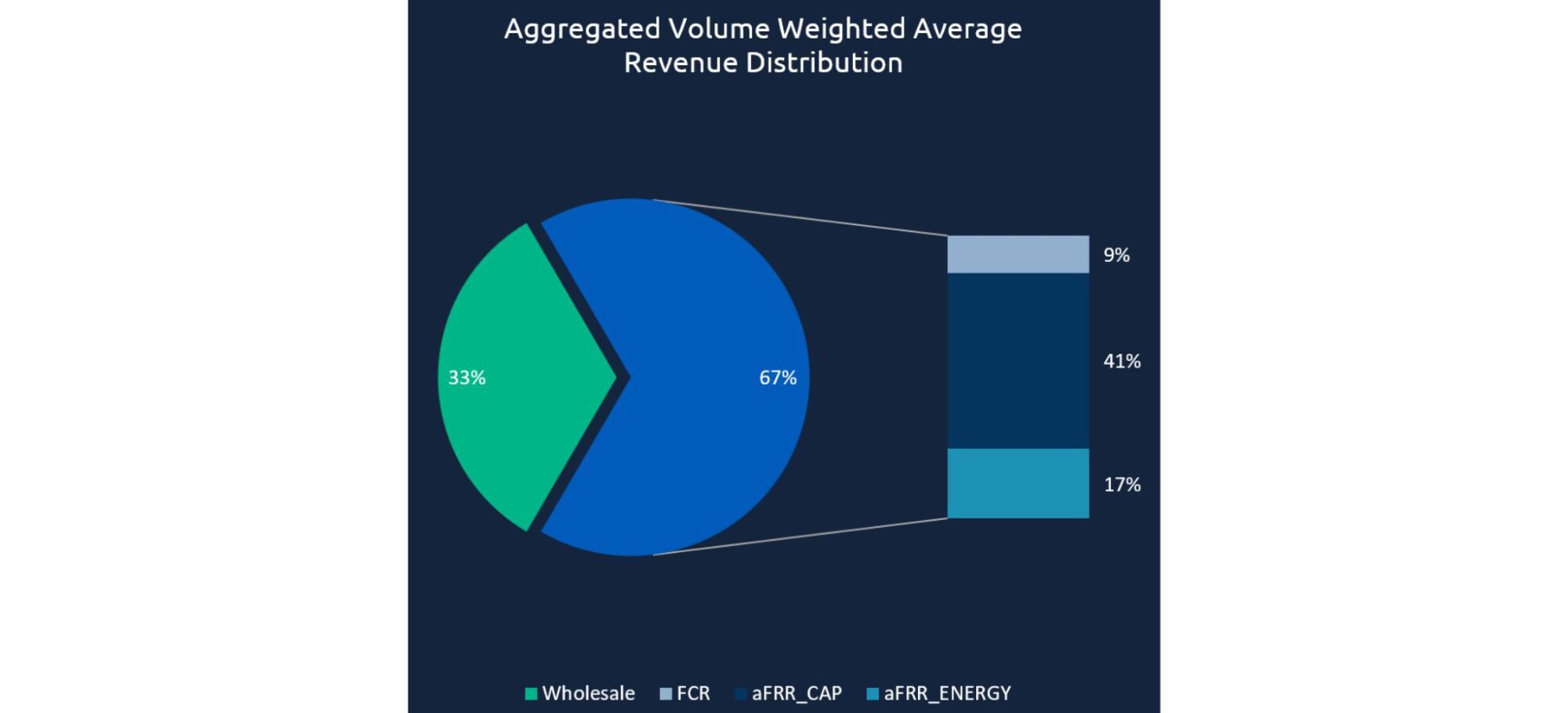 Es fällt sofort auf, dass die klassische Primärregelleistung (FCR) mit lediglich 9 Prozent Anteil an den Gesamterlösen eine eher untergeordnete Rolle gespielt hat. Der Löwenanteil im Bereich entfiel mit insgesamt 58 Prozent auf die Sekundärregelleistung (aFRR), aufgeteilt in Kapazitäts- und Arbeitsmarkt. Wer hier nicht präqualifiziert war oder seine Batteriegroßspeicher bewirtschaften ließ, ohne die aFRR aktiv einzubinden, hat den größten Erlöstopf des Jahres 2025 praktisch ignoriert. Auch bildet insbesondere der negative Regelarbeitsmarkt durch günstiges Aufladen häufig überhaupt die Grundlage für hohe Erlöse im Wholesale durch dortiges gewinnbringendes Verkaufen der durch die aFRR geladenen Energie. Zwar wächst die Rolle der Wholesalebewirtschaftung immer weiter, inbesondere bei sehr großen Speichern, Gewinntreiber bleibt aber derzeit die Regelreserve.
